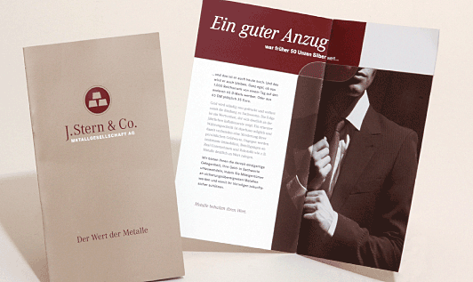 Metall als Investitionsgut – ein subtiles Thema, das einer hochwertigen Umsetzung bedarf. Dieses gelingt durch ein schlichtes, modernes Design und einem Duplexdruck bei den Fotos: