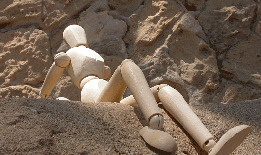 Die Gliederpuppe „Sören“ wird in verschiedenen Positionen in natürlichen Umgebungen fotografiert, beispielsweise „am Strand“, „im Gebirge” oder „auf den Felsen“.
