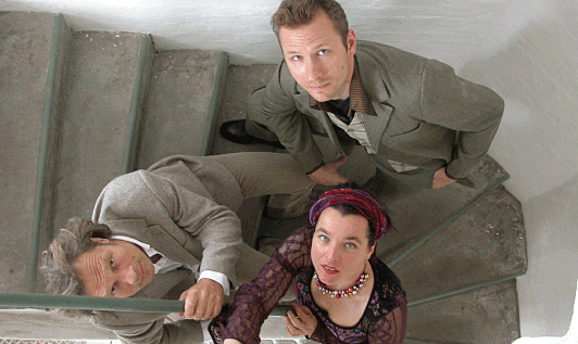 Bei der Veranstaltung liest Martin Heckmann aus Heinrich Heines „Deutschland – ein Wintermärchen“. Alternierend singen Britta Gorontzy und Michael von Hagen Kompositionen mit Heine-Versen. Die Fotos drücken viel von den Sehnsüchten aus, um die es sich bei der Inszenierung handelt, ob auf einer Brüstung, im Treppenhaus oder am Fluß.