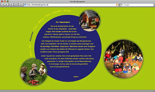Durch die lockere Gestaltung, die fröhlichen Farben, die bogenförmige Navigation und die hohe Anzahl an Bildern vermittelt die Website einen ebenso lebendigen Eindruck, wie ihn die Kinder auf dem Gelände der Bremer Jugendfarm erleben. Textliche Informationen ergänzen die Homepage, ohne sie zu überladen.