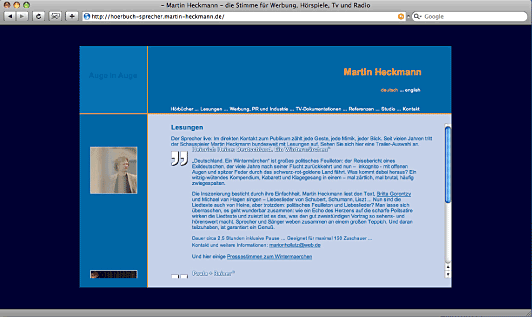 Die „alte“ Website von Martin Heckmann platzt inzwischen aus allen Nähten. Daher wird der Internetauftritt zur Zeit gründlich überarbeitet, um allem Neuen gerecht zu werden.